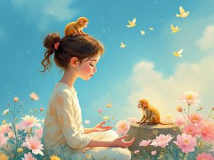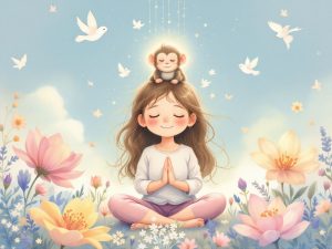 As-tu déjà observé que dans ta tête se cache parfois un petit singe turbulent ? Un singe agile qui bondit de pensée en pensée, d’émotion en émotion, sans pouvoir s’arrêter. Le Yoga t’invite à l’apprivoiser et à redécouvrir le calme au fond de toi. Dans le silence, tu peux entendre danser les rayons du soleil.